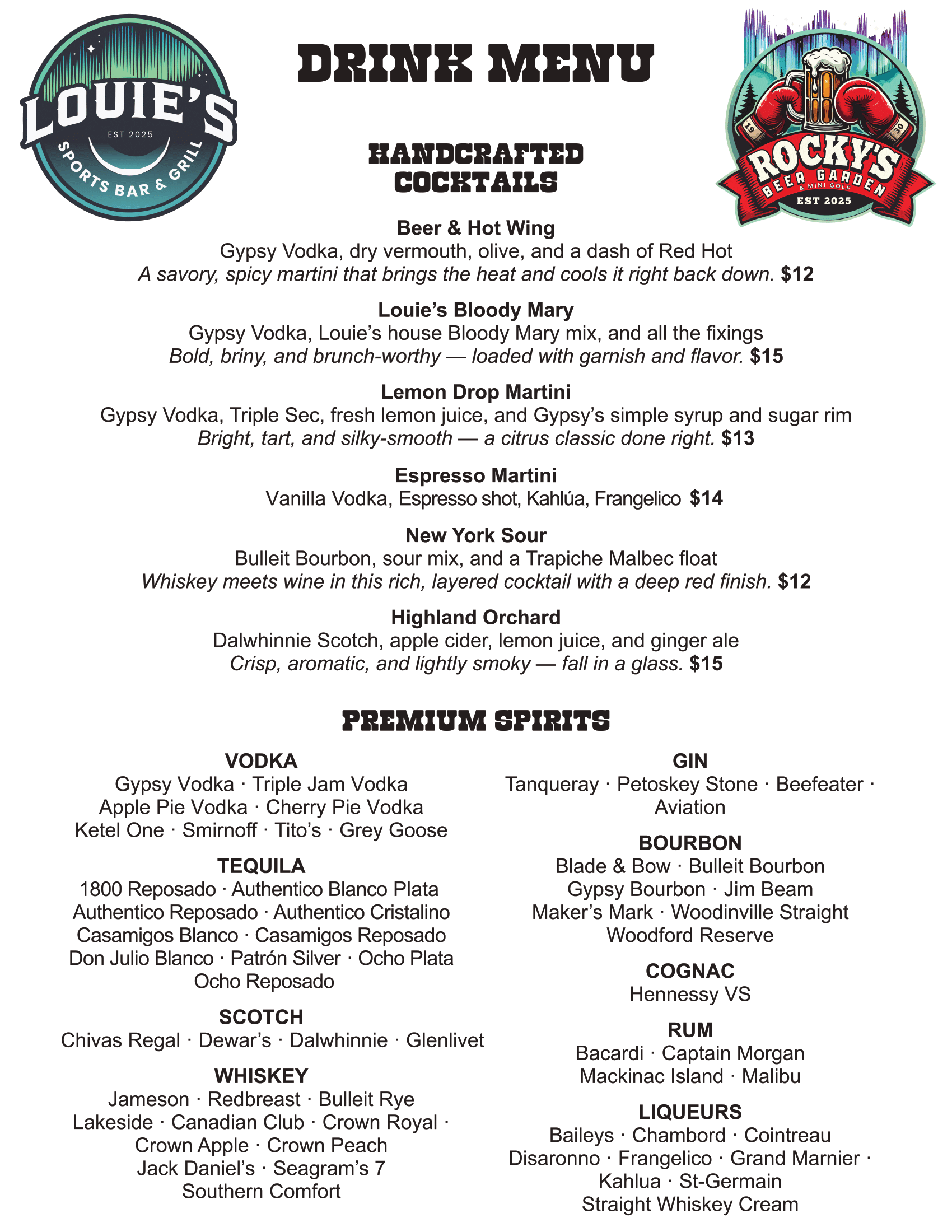 Enjoy favorites from Louie’s Sports Bar & Grill — burgers, wings, pizza, and craft cocktails.