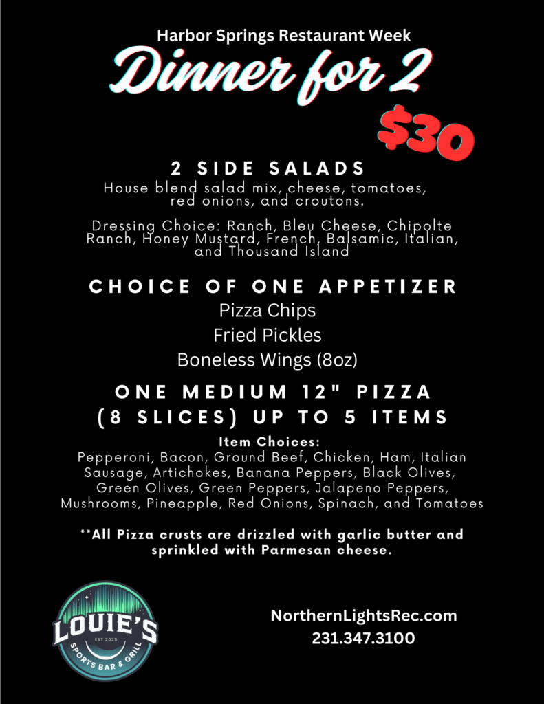 Louie's Sports Bar & Grill has been nominated Best Overall Restaurant, Best Bar, Best Burger, Best Pizza, Best Wings and MORE by the Petoskey News Review 2014 To Present.