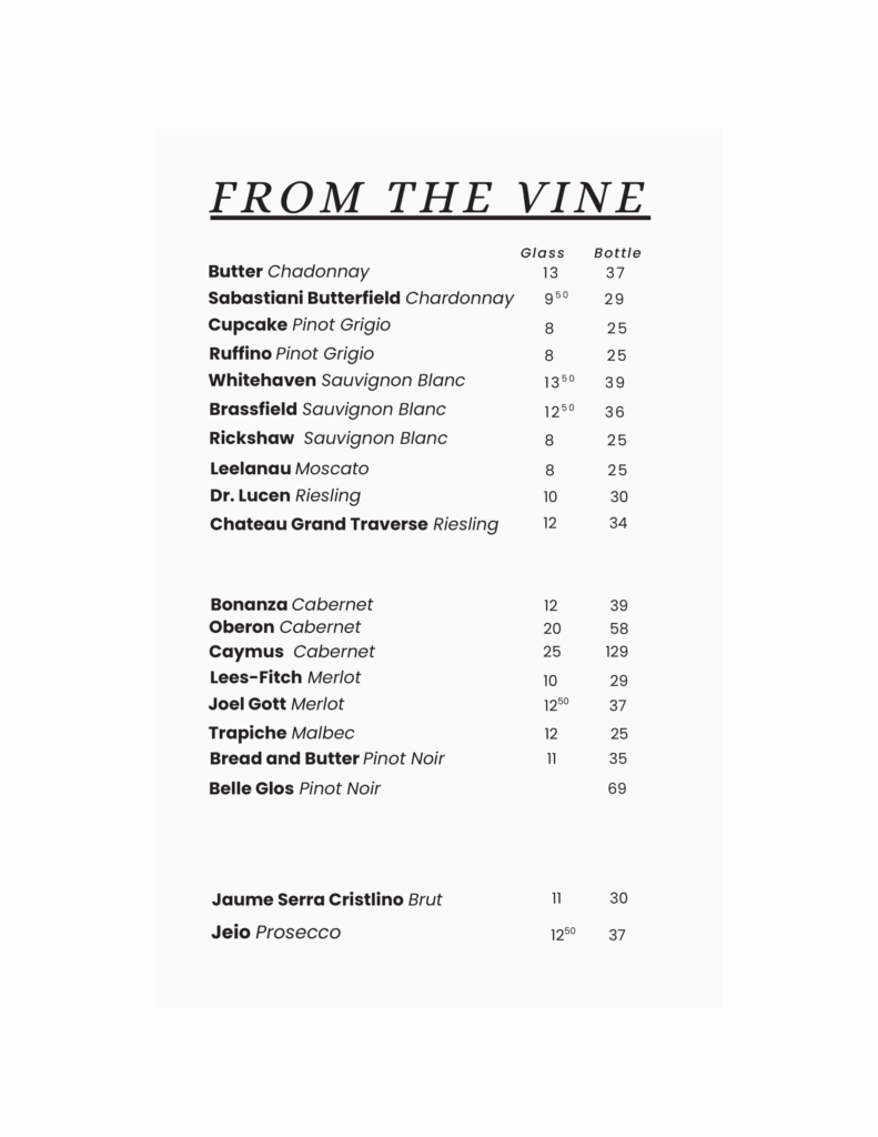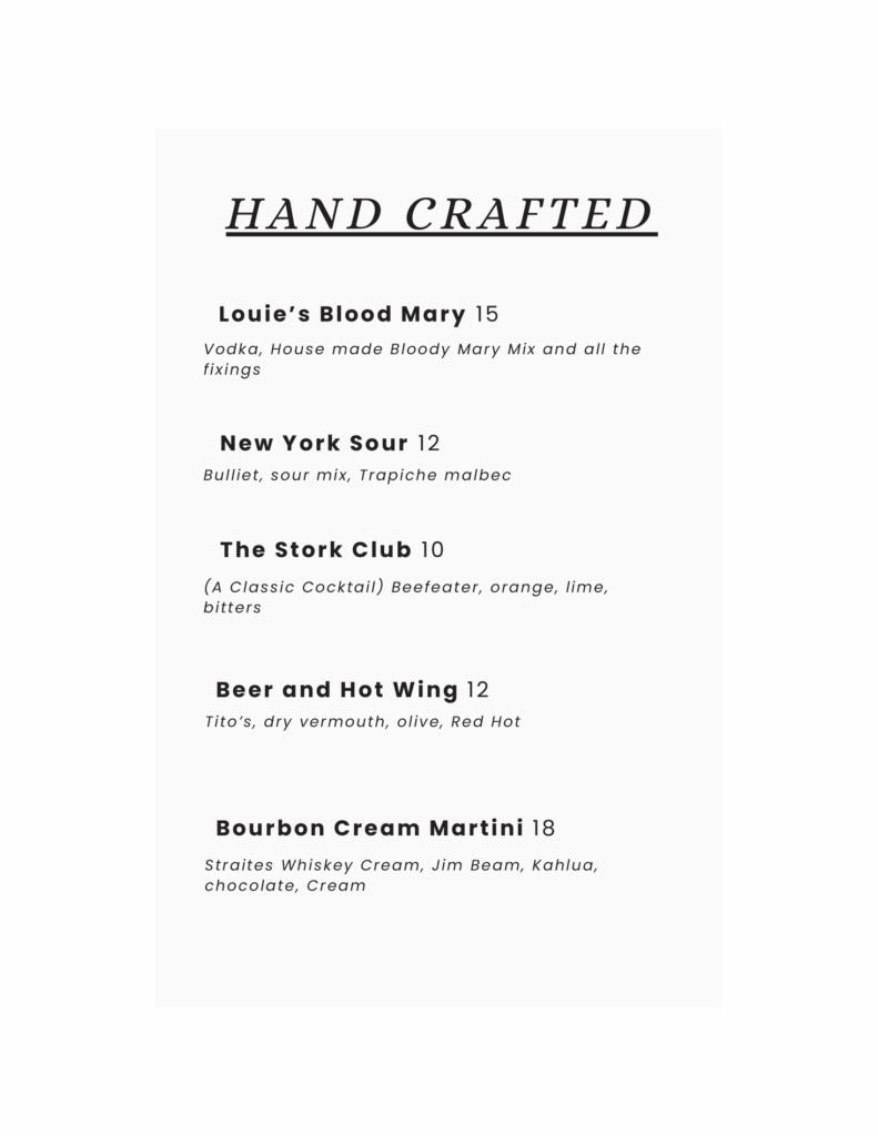 Beer/Wine/Craft Cocktail Menu